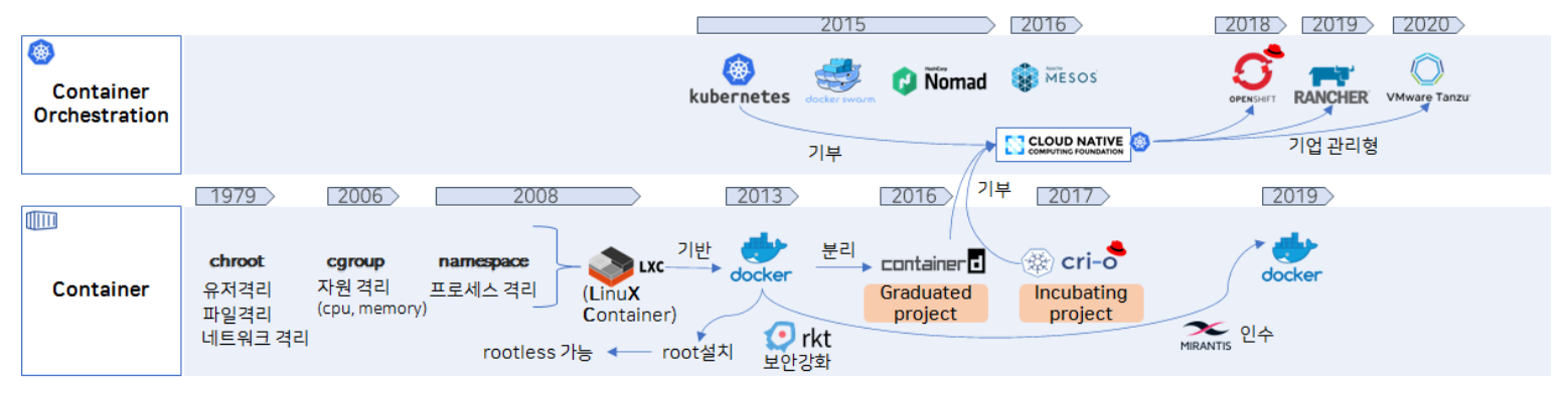 : 기계 친화적이며 컨테이너 실행 및 생성에만 초첨을 맞춘 기술이다.
